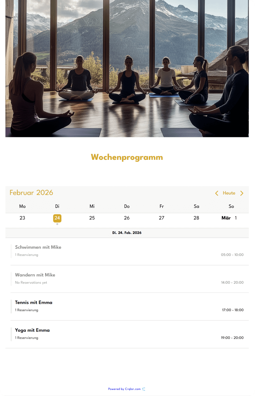 Begeistern Sie Ihre Gäste mit einem abwechslungsreichen Programm. Von geführten Wanderungen bis zu Weinverkostungen – Crqlar macht Ihre Hotel-Highlights sichtbar und einfach buchbar.